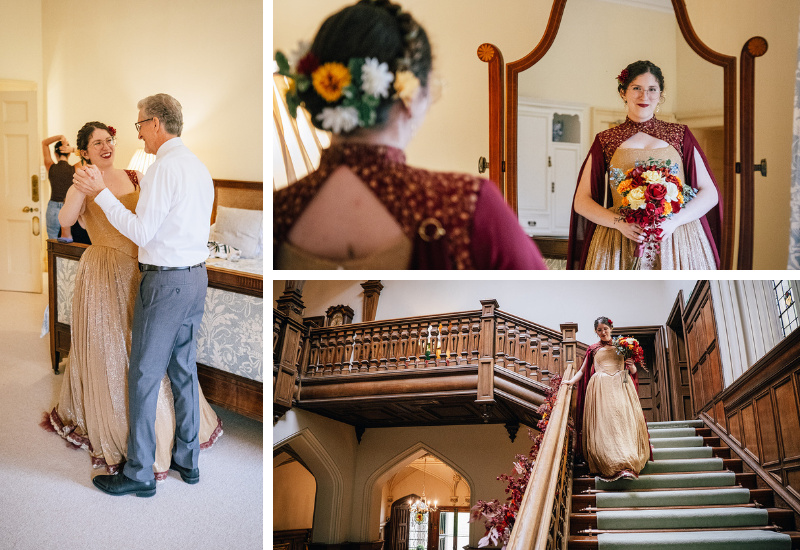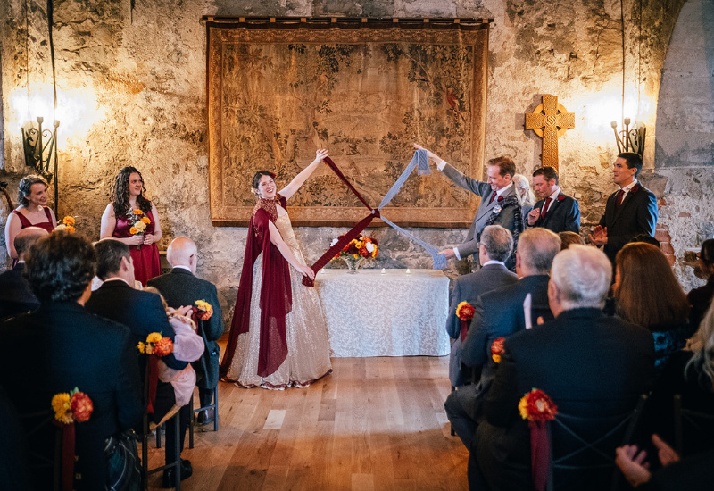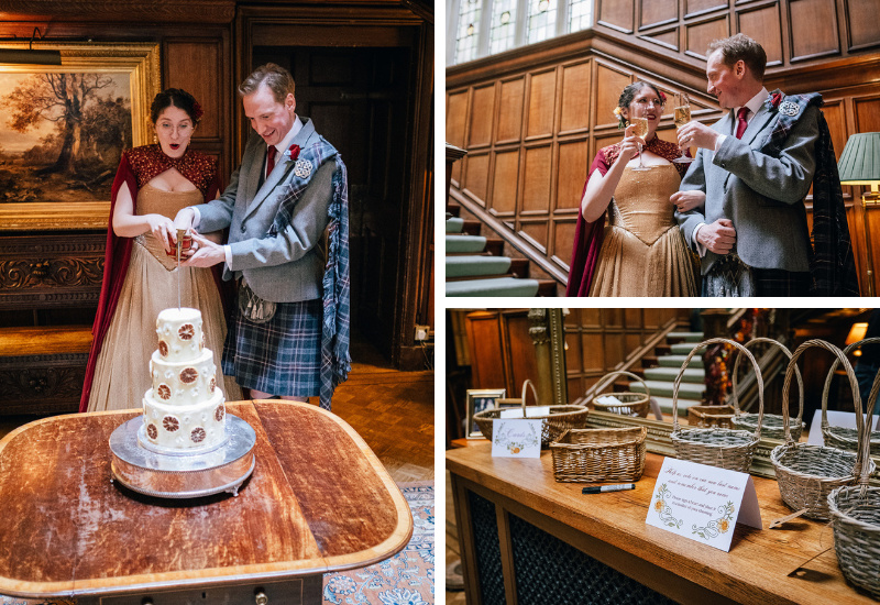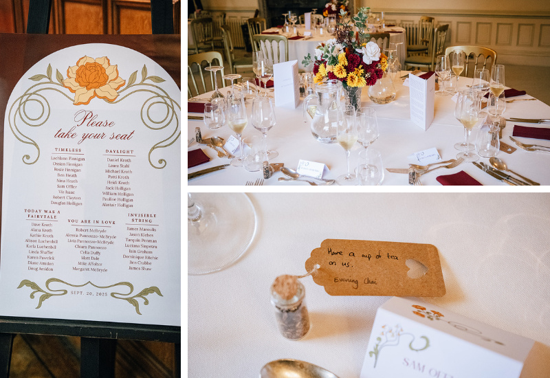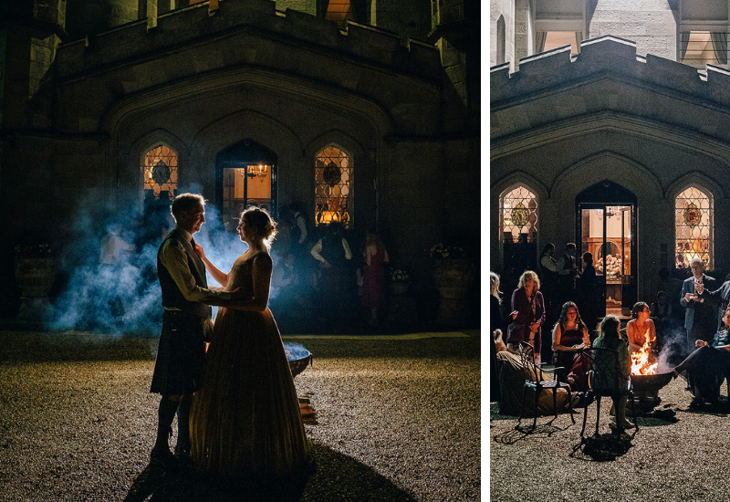 Their intimate gathering of 41 guests created a lovely atmosphere. Heidi and Jack tied the knot in our 600 year Auld Keep, followed by a delicious dinner in the Croquet Room. Our dedicated caterer served a fully vegetarian menu bursting with flavour, including tasty canapes, a three-course wedding breakfast, and late-night snacks. The wedding party danced the night away in the Front Hall and enjoyed roasting s’mores over the firepits late into the evening.