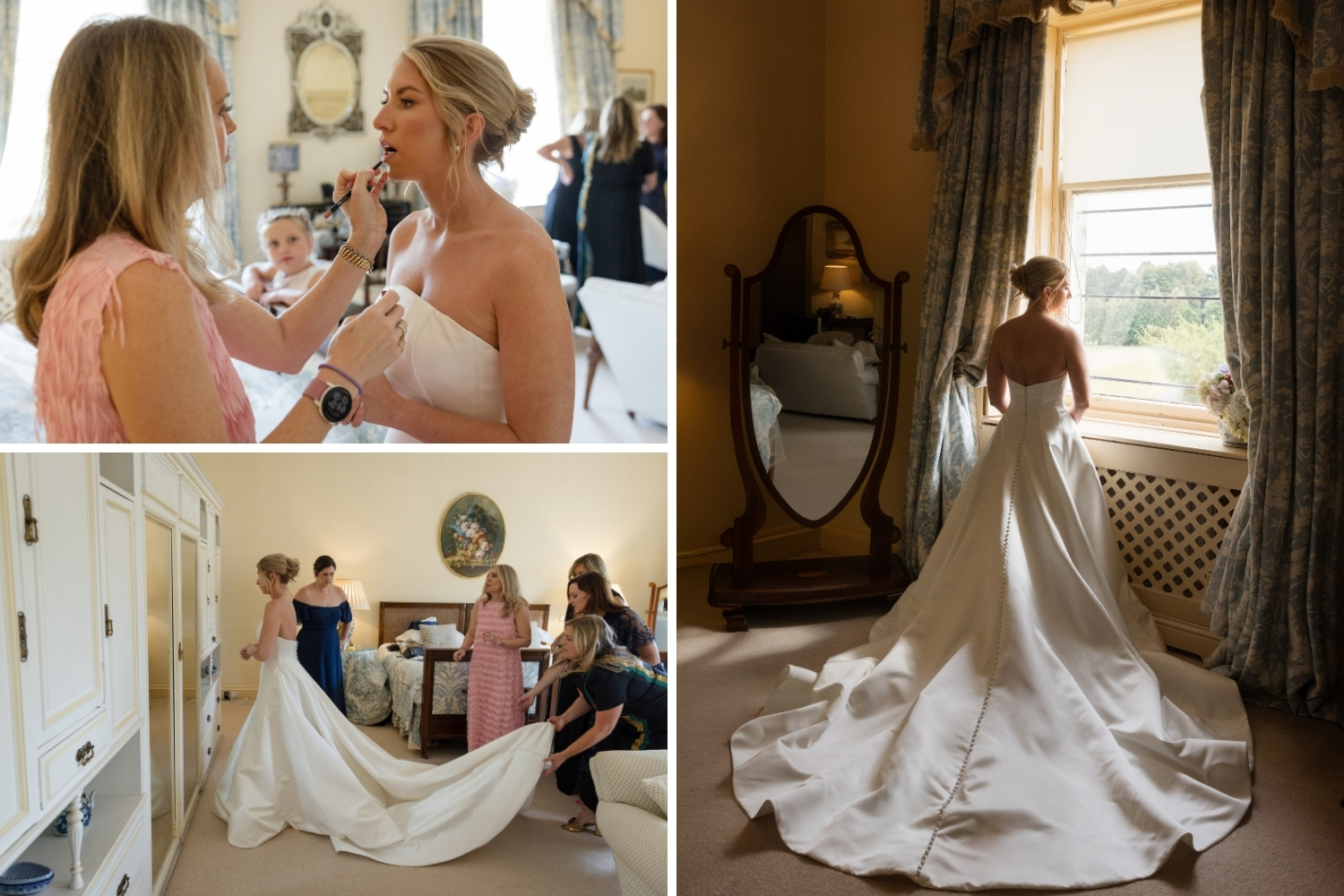 Ahead of the ceremony, the groom and his groomsmen enjoyed a light lunch in the Billiards Room, while the bride and her bridal party prepared in the Spring Bedroom.