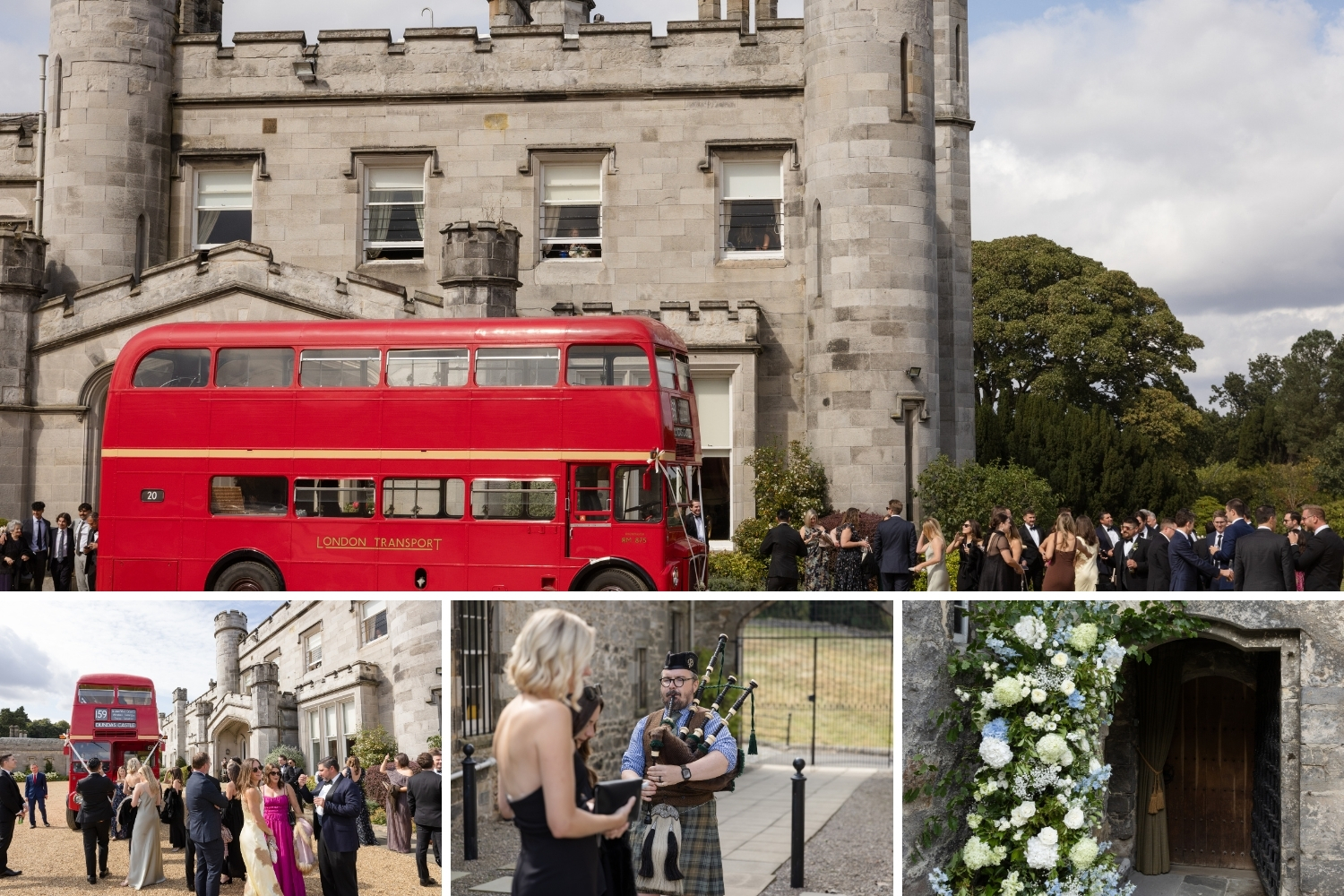 Guests arrived aboard the iconic Big Red Bus and were welcomed by the sound of the piper playing at the front of the Castle. As guests made their way to the ceremony, the couple took a quiet moment together to share a first look. Katherine was then piped to the Auld Keep, where the ceremony was conducted by a family member in front of 88 of their closest family and friends.